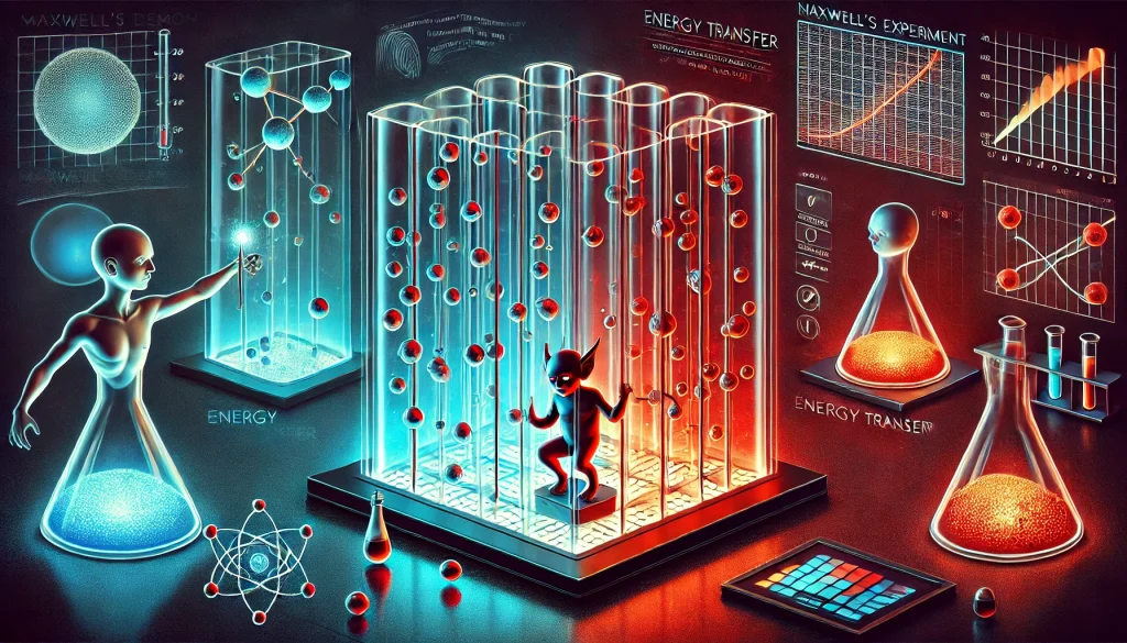 「マクスウェルの悪魔」は、1867年に物理学者ジェームズ・クラーク・マクスウェルが考案した思考実験です。この仮説では、エネルギーを消費せずに熱の移動を制御できる存在を想定し、熱力学第二法則(エントロピー増大の法則)に挑戦します。