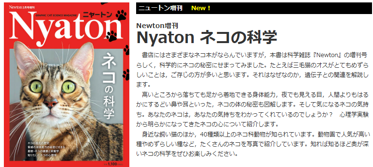 「ニャートン」は、猫に関する科学情報をやさしく、かつ深く掘り下げる特集号です。