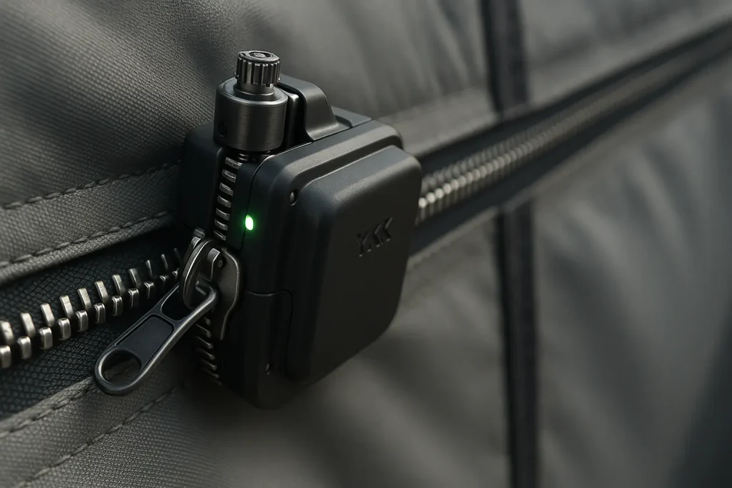 YKKは、ファスナーの開閉を遠隔操作できる「自走式ファスナー」を開発している。この製品は、歯車とモーターを内蔵した小型の自走ユニットをファスナー本体に後付けし、有線式のコントローラーで操作する仕組みだ。
