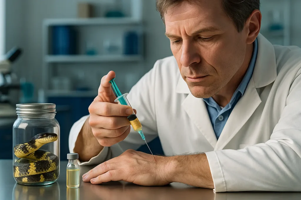 そんな中、アメリカのティム・フリーデさんは自らの体にヘビ毒を注射し、抗体を作り出しました。この取り組みが、新しい治療薬の開発につながっています。