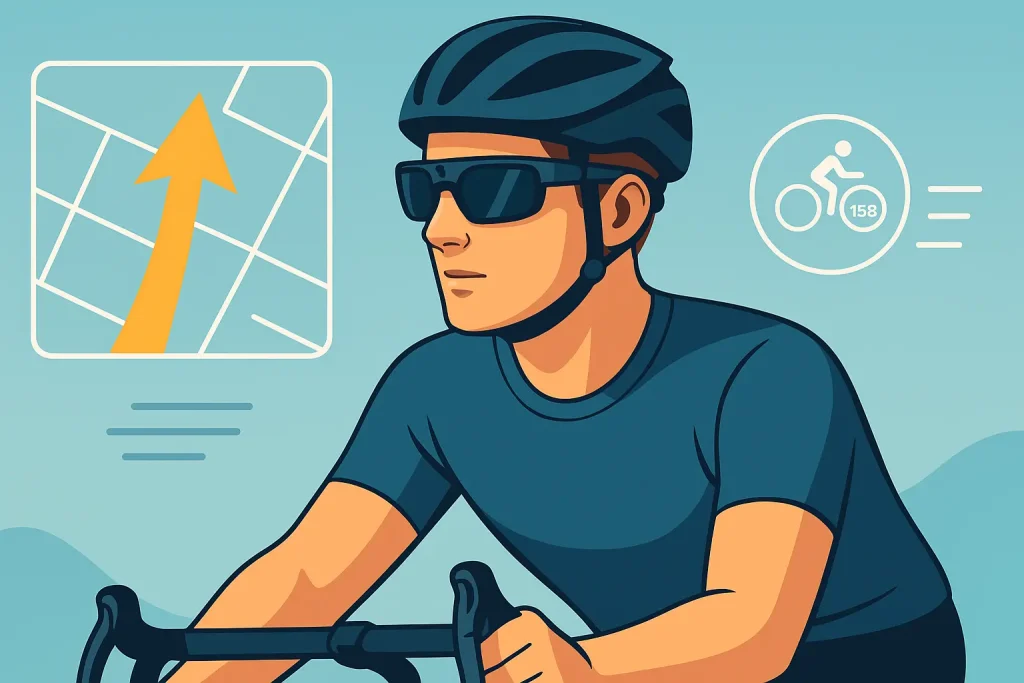 新スマートグラスはスポーツシーン向けに設計されています。レンズ中央のカメラでランニングやサイクリング映像を高画質撮影できます。