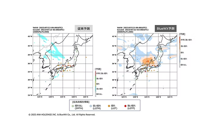 この技術を開発したのは、慶應義塾大学から生まれたBlueWXです。2019年からANAと共同研究を続け、2023年に設立されました。ANAグループのパイロット2,500人以上が協力し、実際のフライトでテストを繰り返したことで高い精度を実現しました。