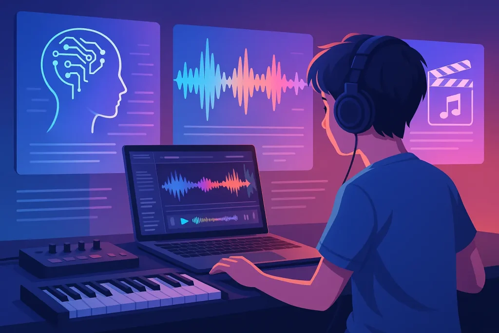 Tuneeをはじめとした最新の音楽作成AIの特徴や、プロの現場での活用例を紹介します。AIがどのように音楽制作を変えているのか、一緒に見ていきましょう。