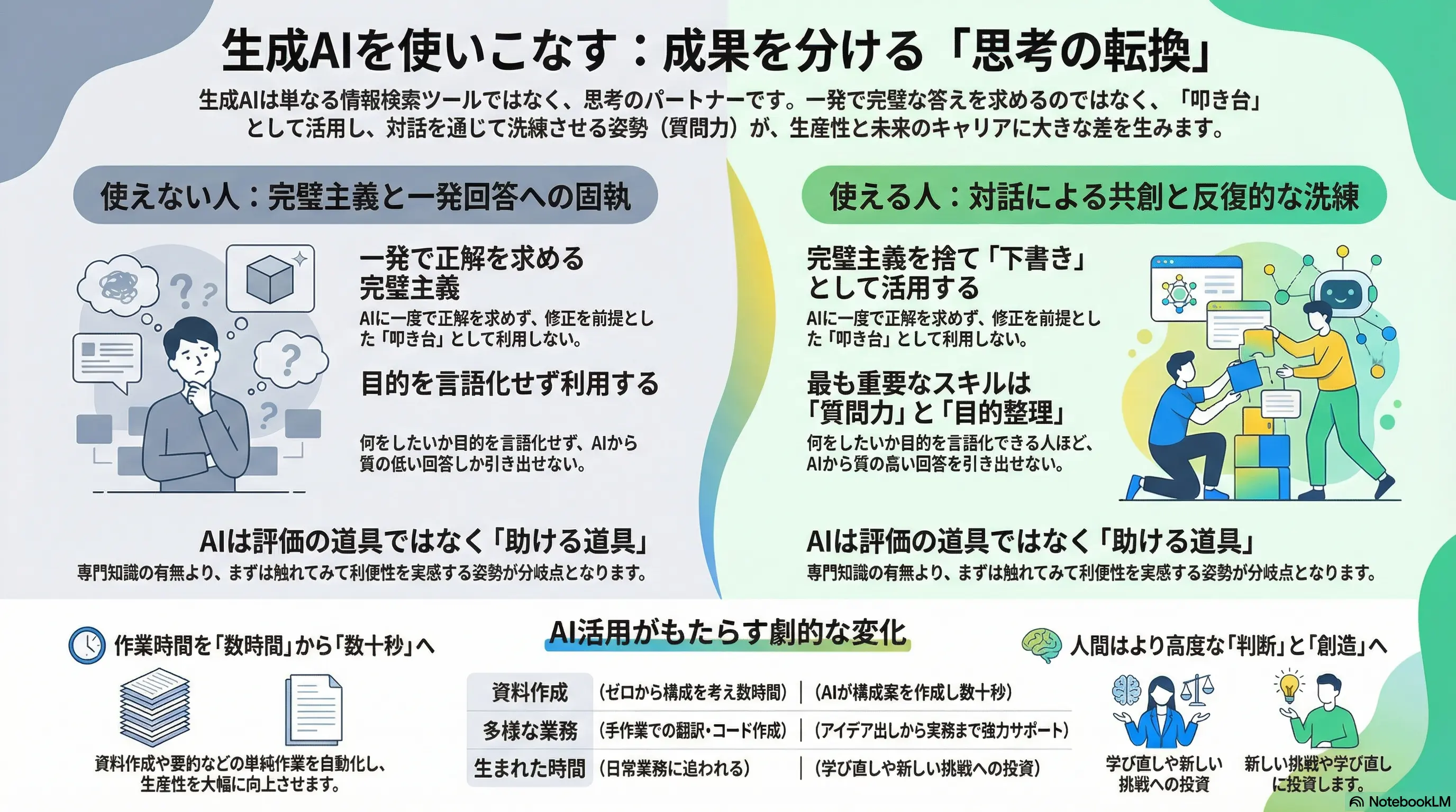 【解説記事】#005 [Latest AI #02] 生成AIは「使える人」と「使えない人」で何が違うのか| 仕事と生活の分岐点