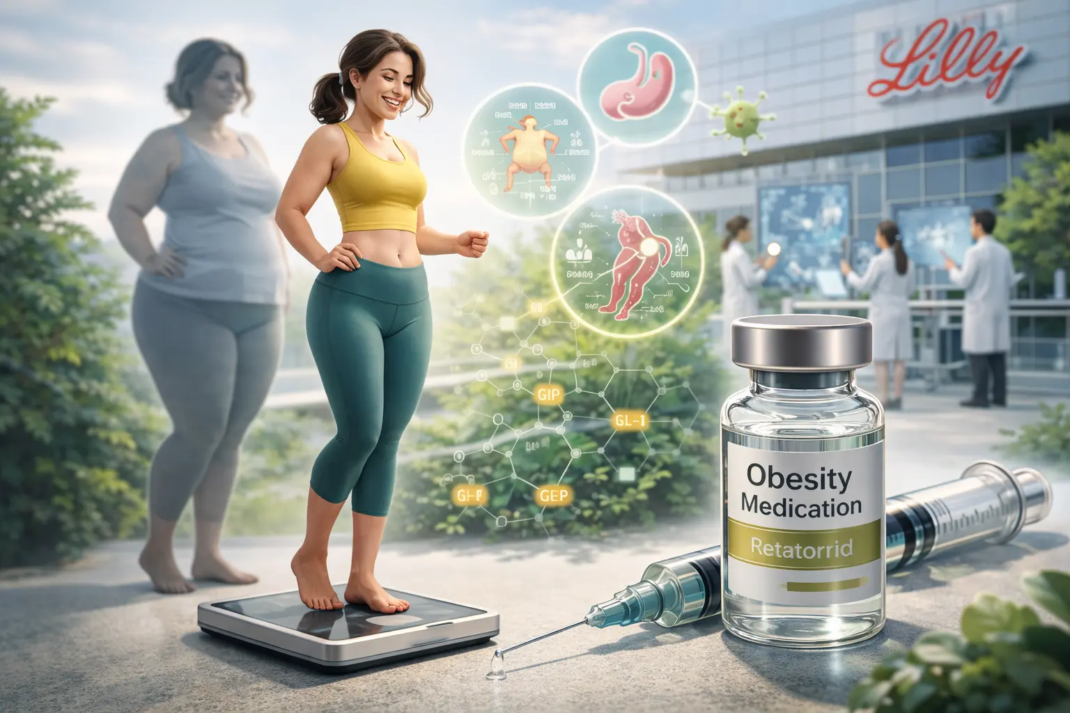 Eli Lilly が開発する次世代の肥満症治療薬「レタトルチド」は、臨床試験において体重を約23%減少させ、さらに膝の痛みを大きく改善する効果が確認されました。