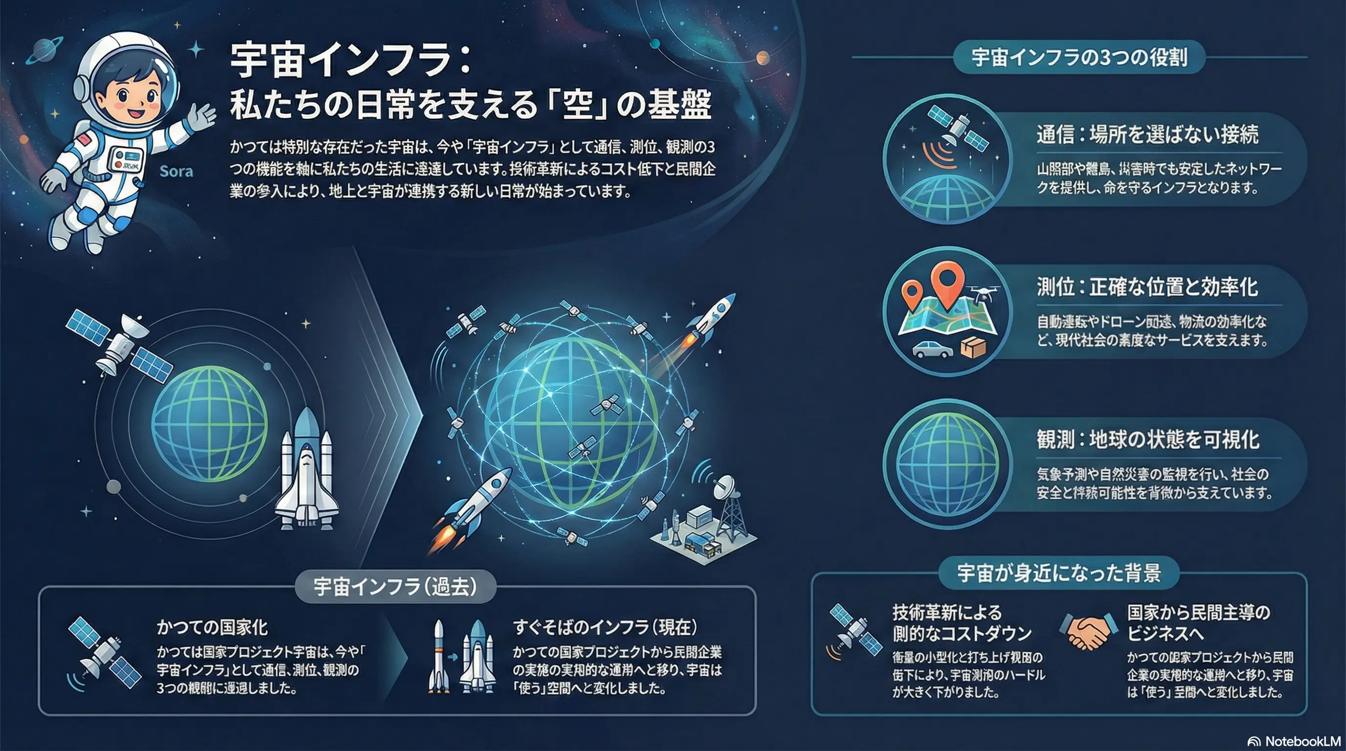 その事実に気づいたとき、宇宙はもう遠い世界ではなく、すぐそばにあるインフラなのだと実感できるのではないでしょうか。